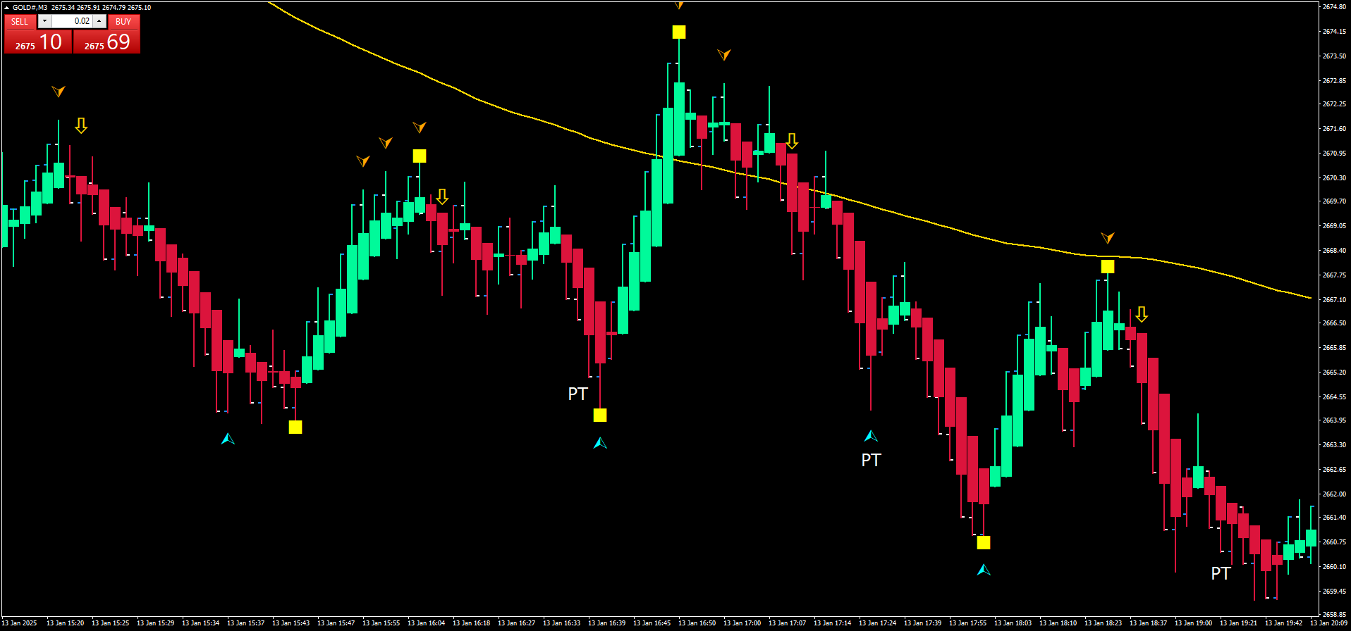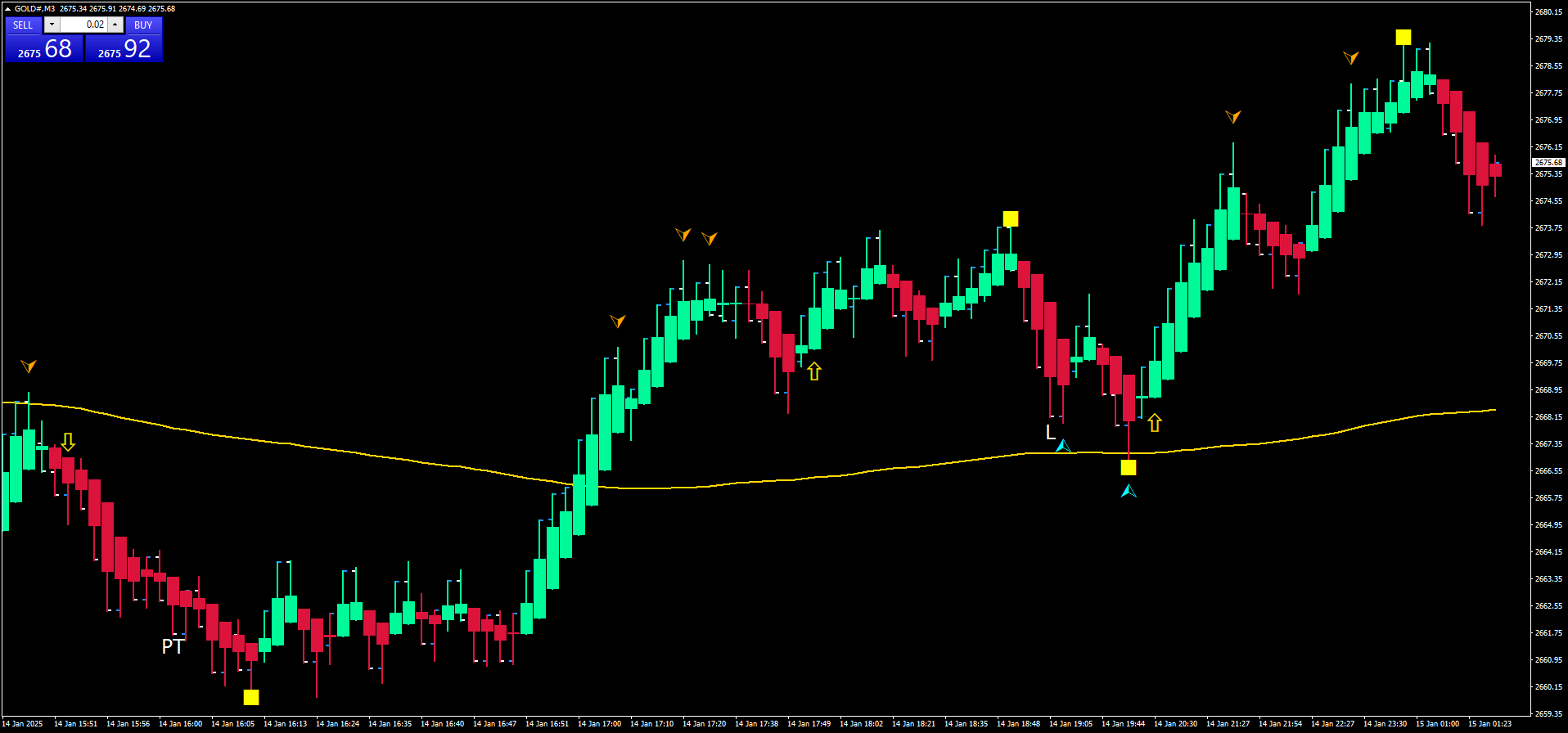 O TMA CG No Repaint é uma média móvel adaptativa que não repinta, ou seja, não muda retroativamente. Este indicador é útil para identificar a direção da tendência e fornecer sinais de compra e venda. A configuração (20, 2.0) oferece um equilíbrio entre sensibilidade e suavidade, ajudando a evitar sinais falsos.