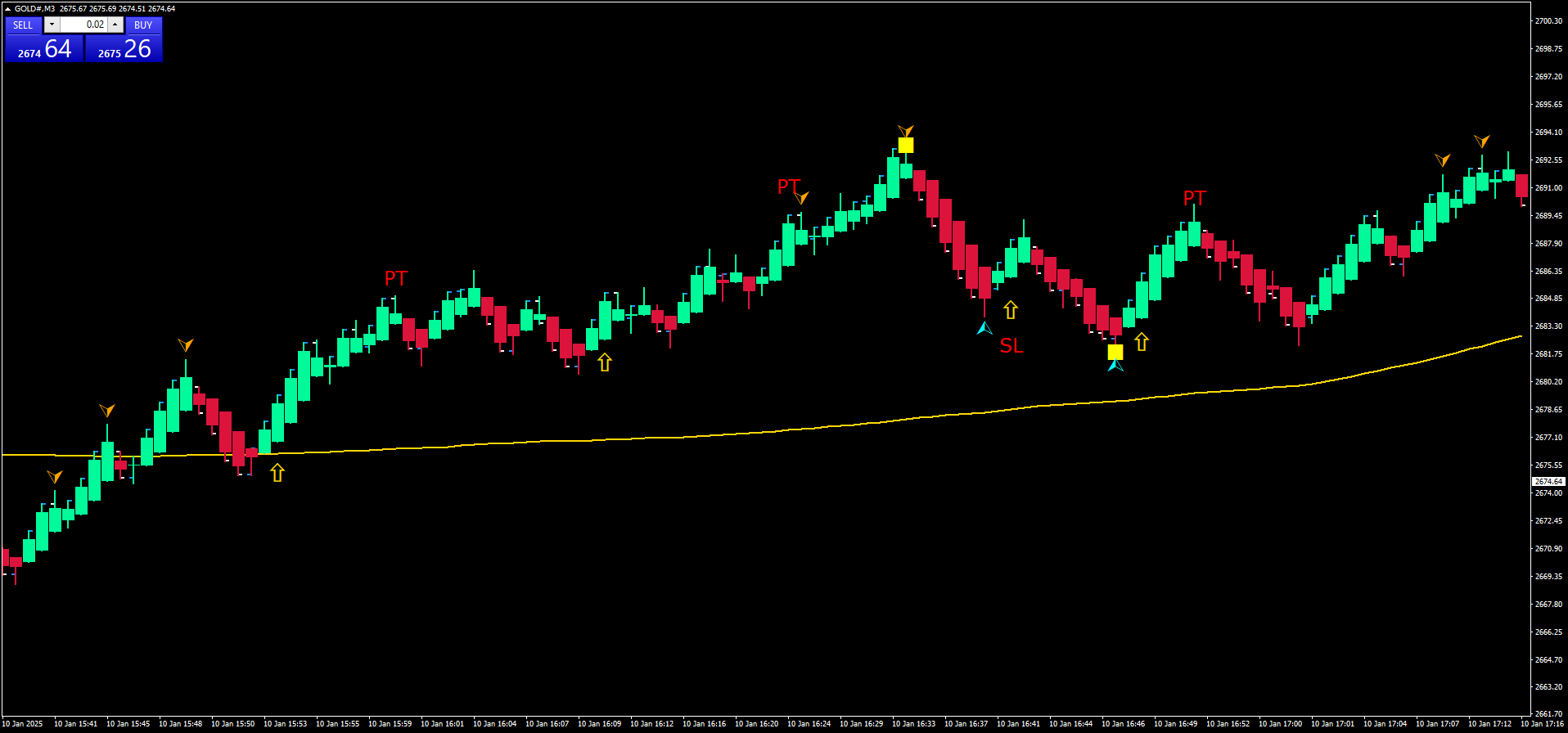 A estratégia é mais eficaz em pares de moedas voláteis como Ouro, Nasdaq, SP500, EURJPY, USDJPY e GBPUSD.
