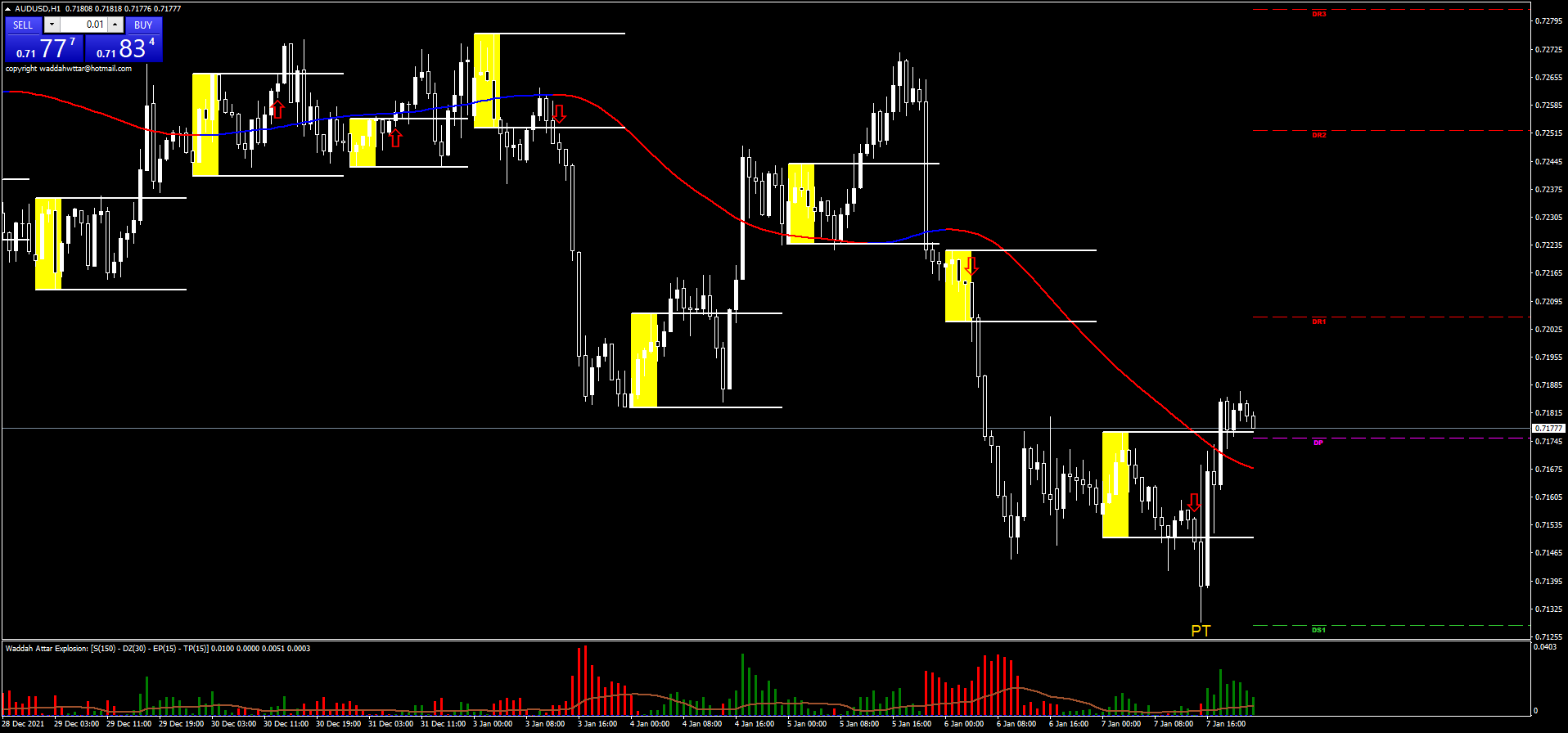 O Waddah Attar proporciona uma visão clara da força do mercado. Isso ajuda a confirmar que um rompimento tem força suficiente para se sustentar, evitando operações baseadas em falsos sinais.