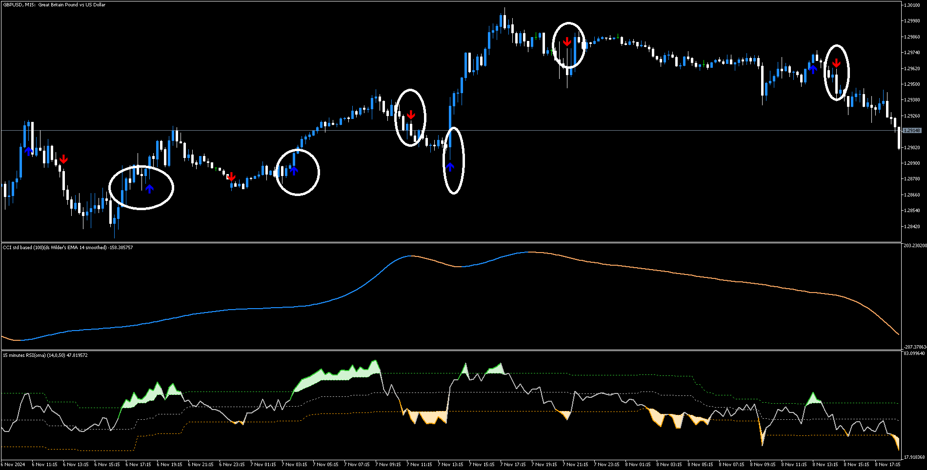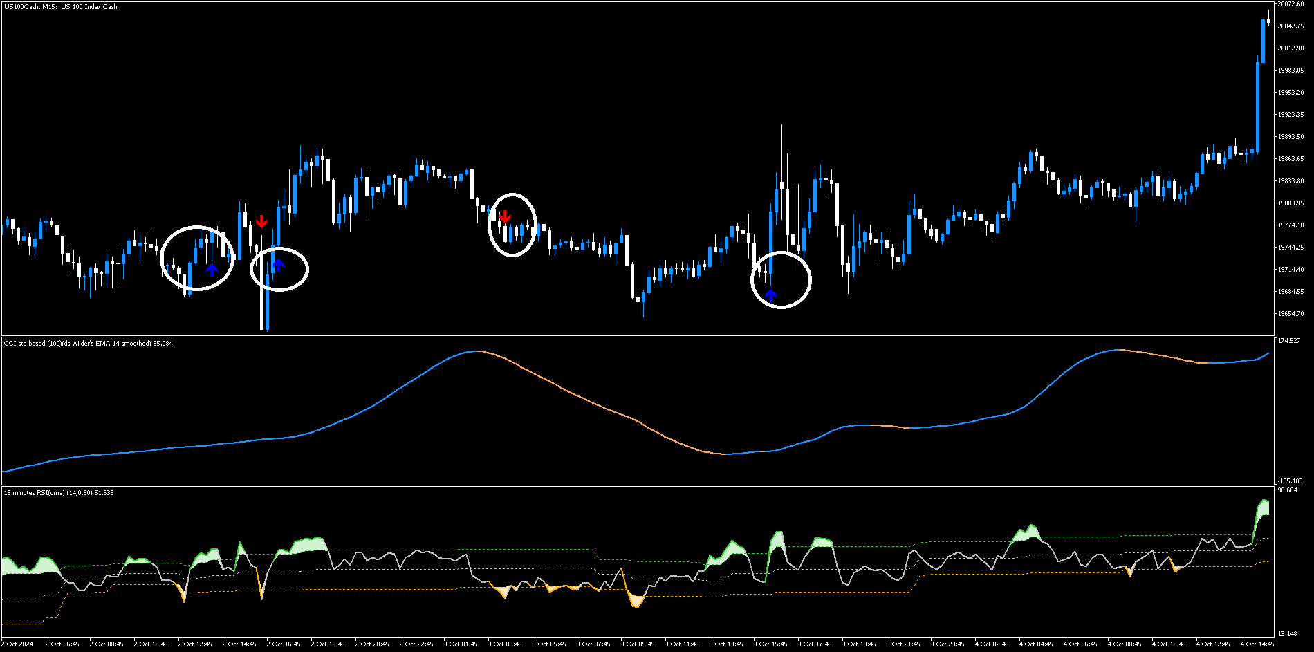 A Estratégia de Momentum e Tendência com CCI Duplo e RSIOMA no MT5 é mais adequada para day trading, com prazos de 5 e 15 minutos. No entanto, pode ser ajustada para prazos maiores, dependendo da preferência do trader. Os indicadores utilizados são: