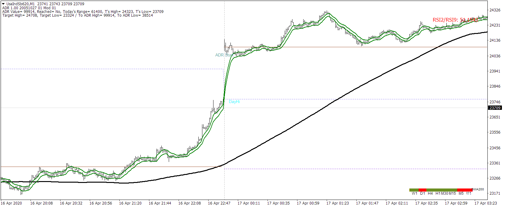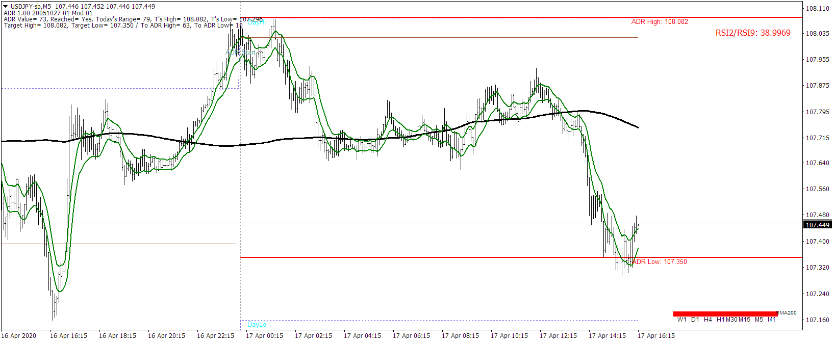 • A SMA200 e o canal EMA8 fornecem sinais claros de direção, enquanto as linhas ADR e os níveis do dia anterior ajudam a confirmar e ajustar a estratégia.