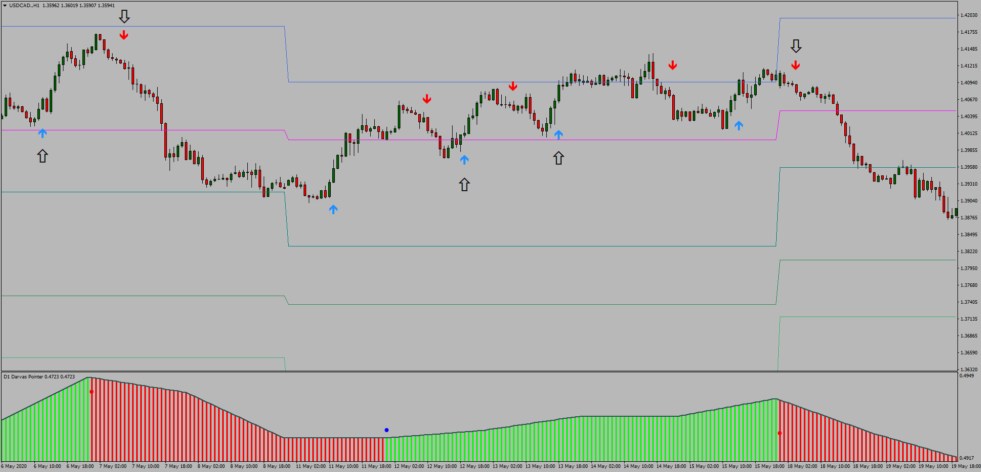 Forex Darvas PointerIdentifica rompimentos importantes em múltiplos time frames.