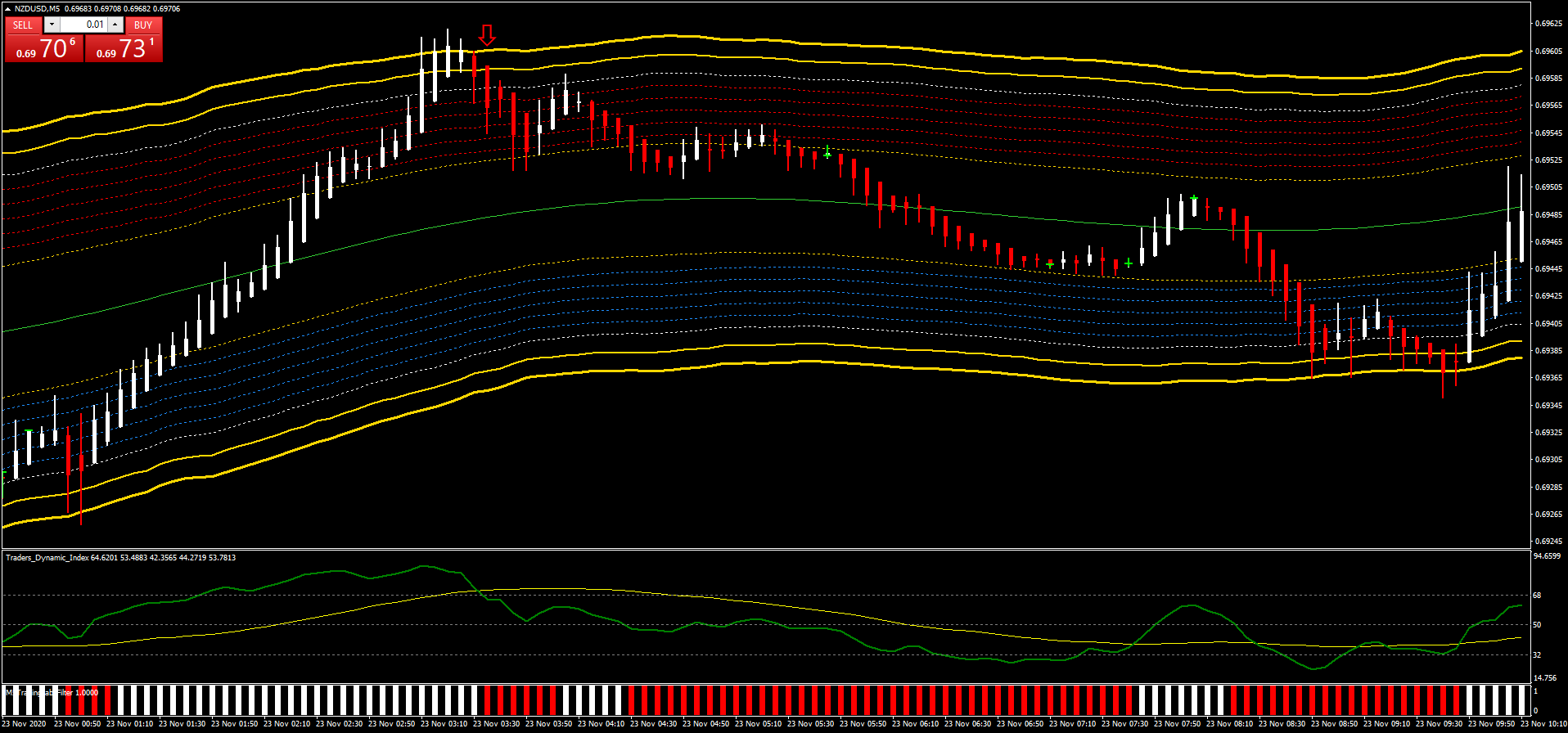 Essas bandas, combinadas com o TDI e o indicador de tendência e momentum, proporcionam ao trader uma visão clara de quando comprar ou vender com base em critérios técnicos objetivos.