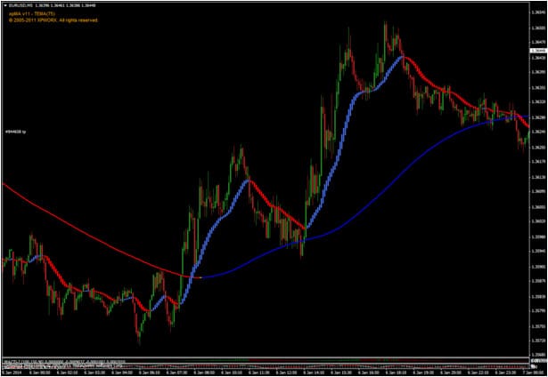 O indicador xpMA (eXponential Moving Average) é uma média móvel exponencial modificada que ajuda a identificar a direção da tendência. Quando está azul, indica tendência de alta; quando está vermelha, indica tendência de baixa.
