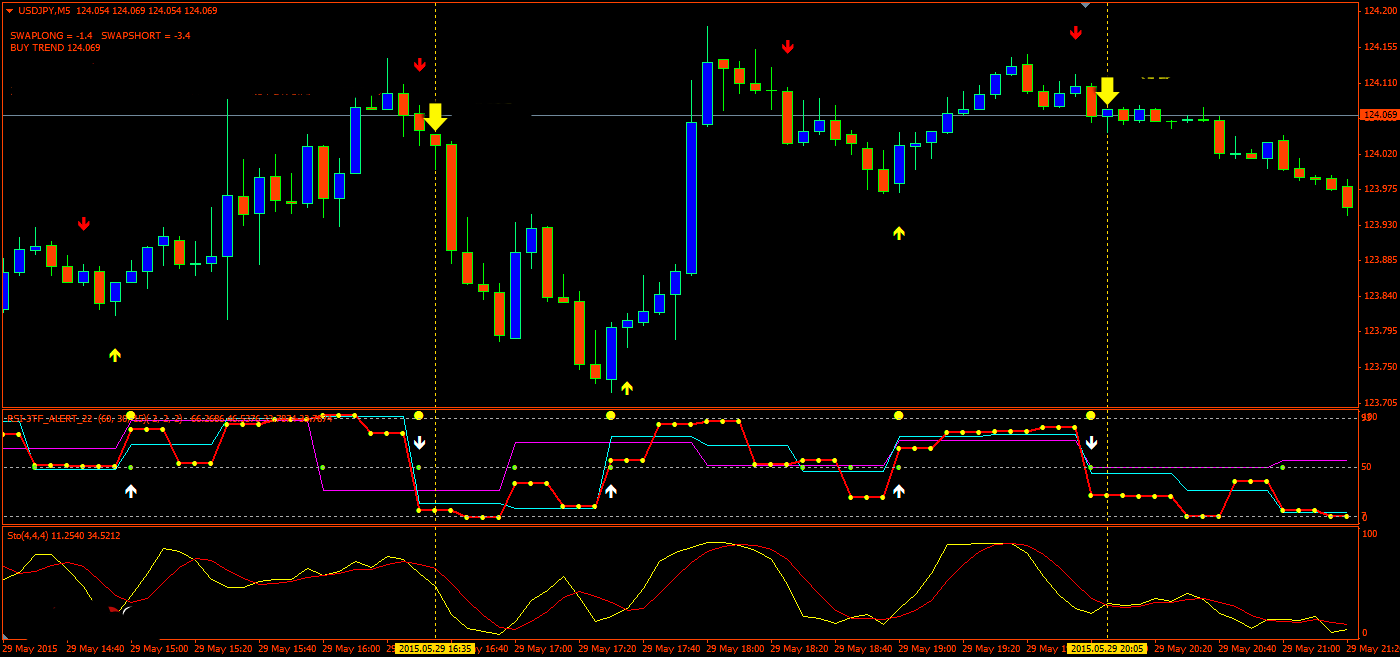 3. A linha amarela do Stochastic está abaixo da linha vermelha.