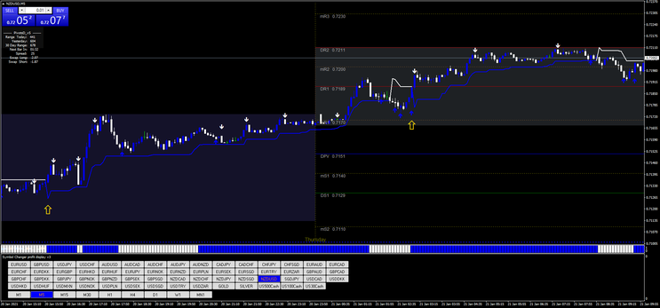 • Buy Sell Alert com pontos azuis abaixo das barras.