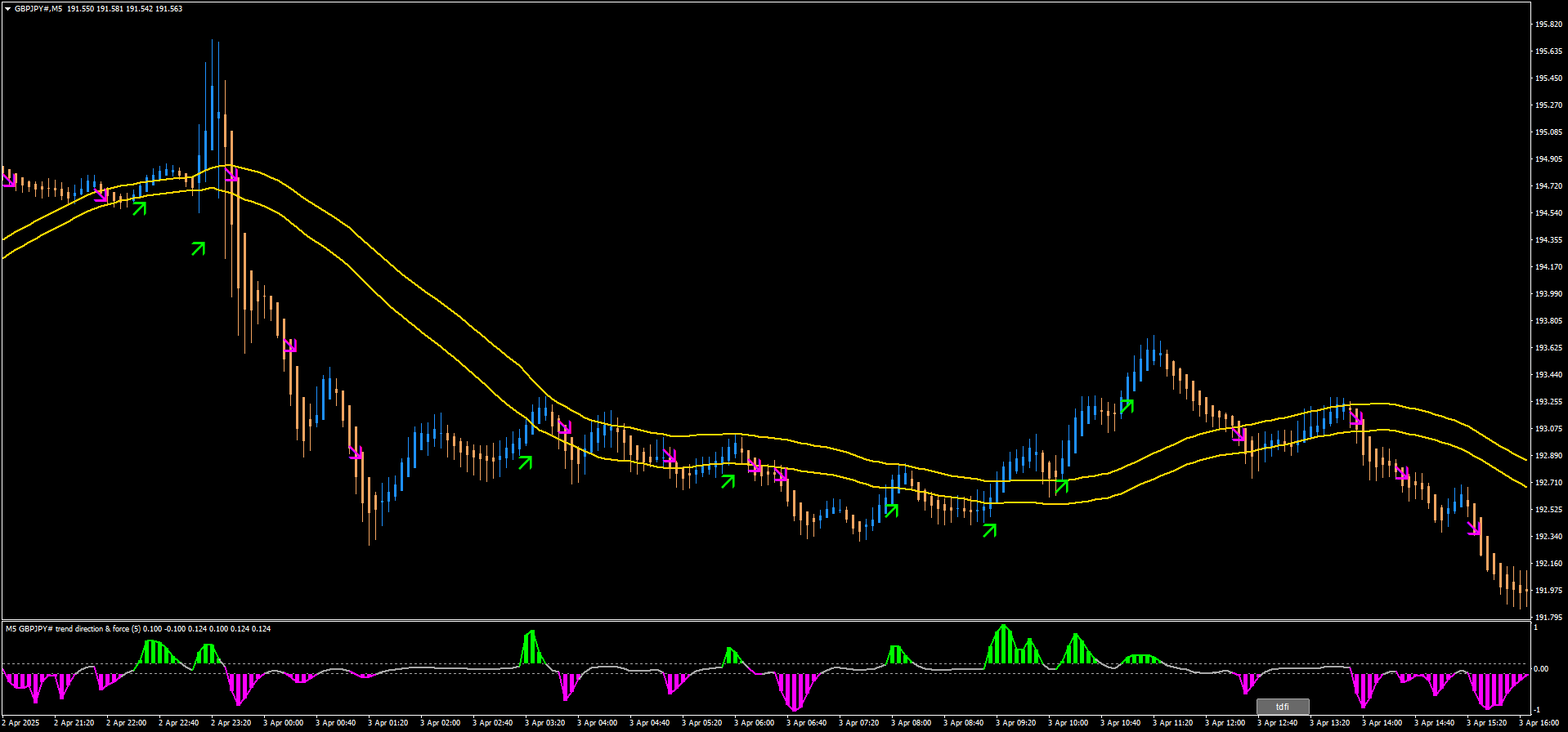 Trend Direction e Force (setas + histograma) | Mostra força do movimento e ponto de entrada |