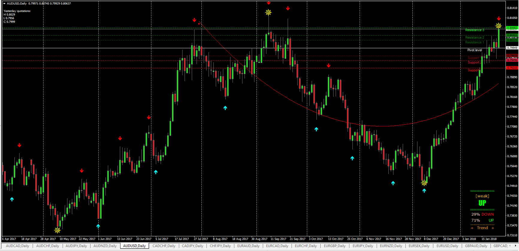 - Pontos de Reversão e Continuação: Os Fibonacci Pivots THV.ex4 são representados por linhas pontilhadas que indicam níveis de suporte (vermelho) e resistência (verde), permitindo aos traders identificar áreas potenciais de reversão ou continuação de tendências.
