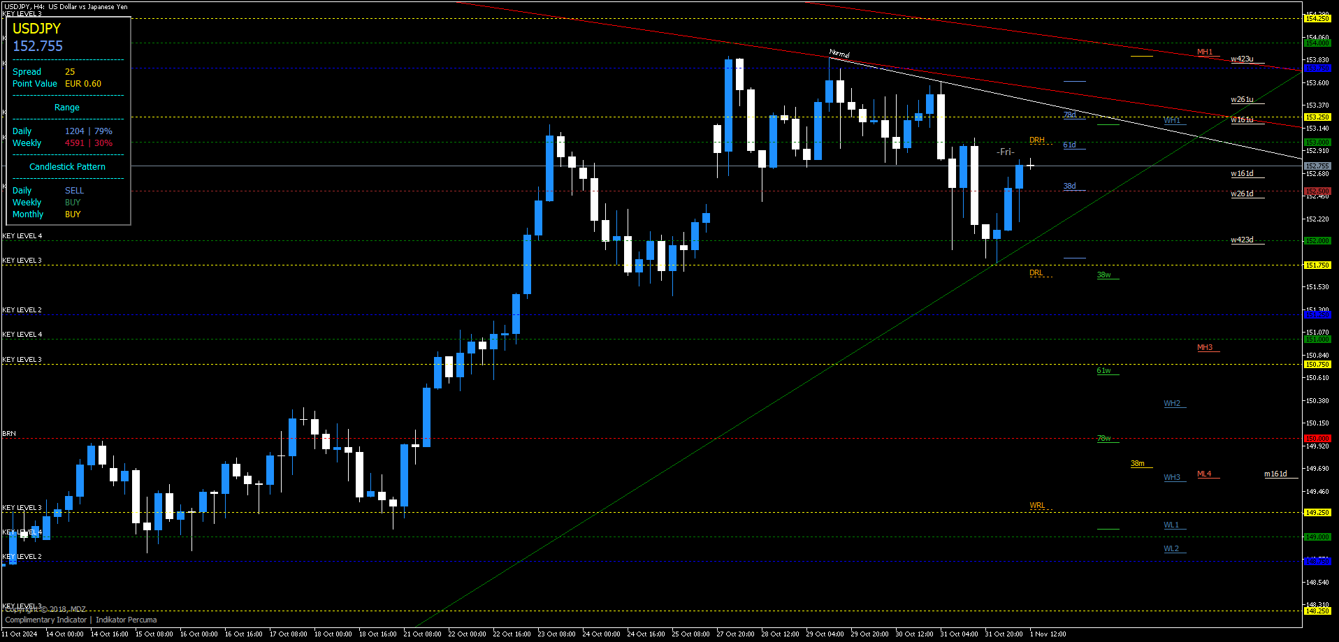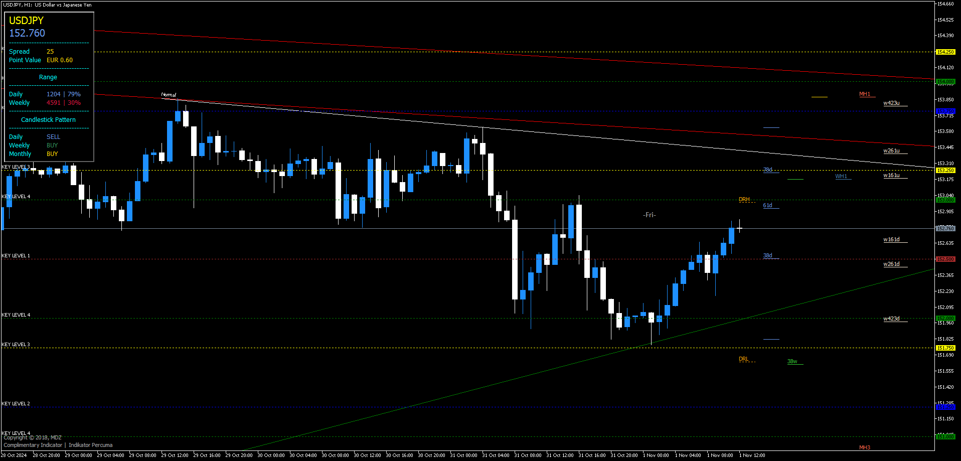 Identificar a tendência é um dos aspectos mais fundamentais da análise técnica. O Indicador MDZ exibe linhas de tendência, oferecendo uma representação clara da direção atual do mercado. Essas linhas de tendência são inestimáveis para determinar o momentum e prever possíveis mudanças de tendência.